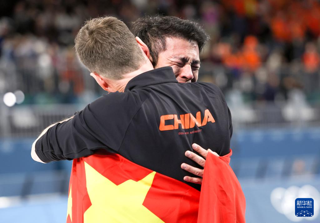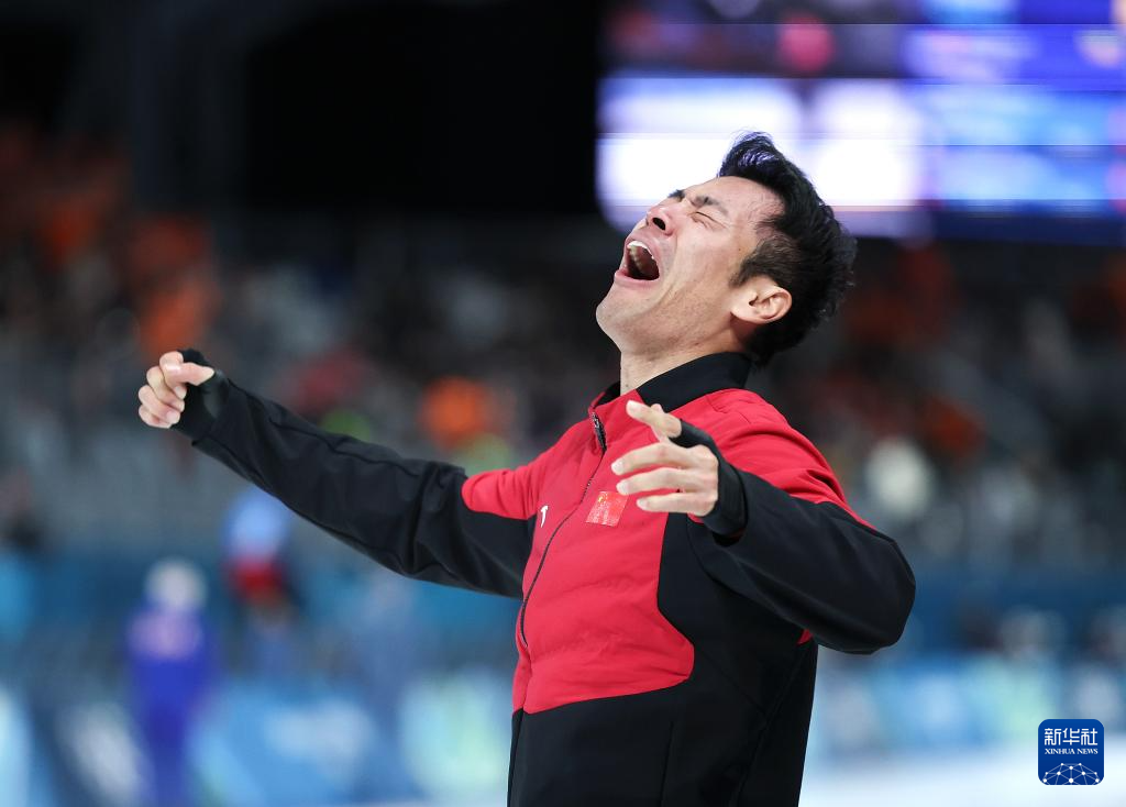 2月19日,宁忠岩在赛后身披国旗庆祝。