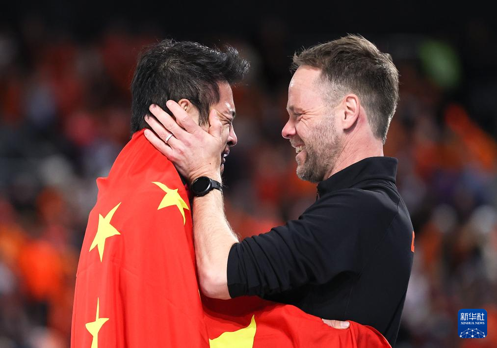 2月19日,宁忠岩(右)在赛后与教练庆祝。