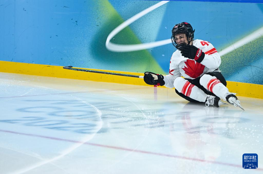 2月19日,加拿大队球员奥尼尔(右二)在比赛中射门。