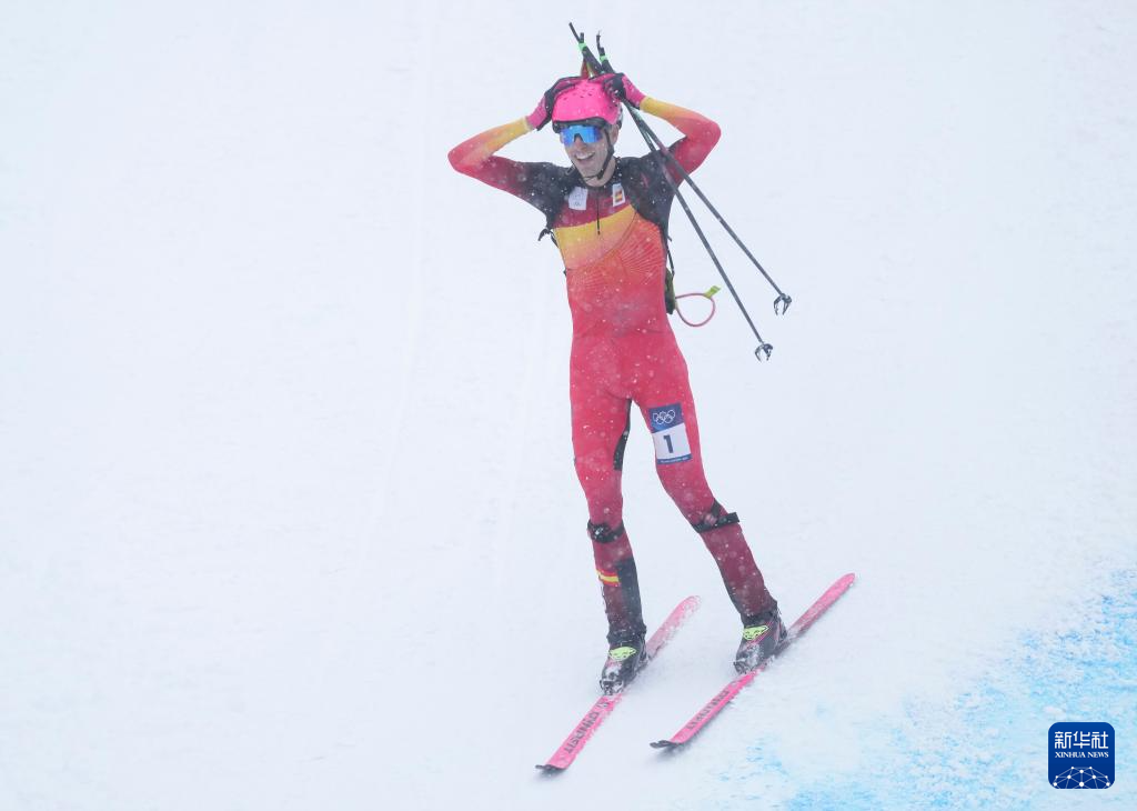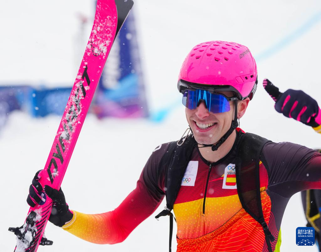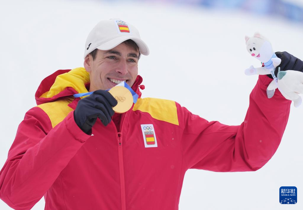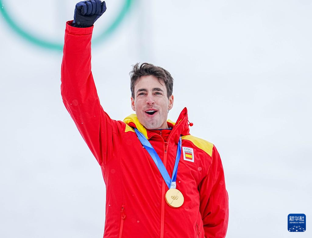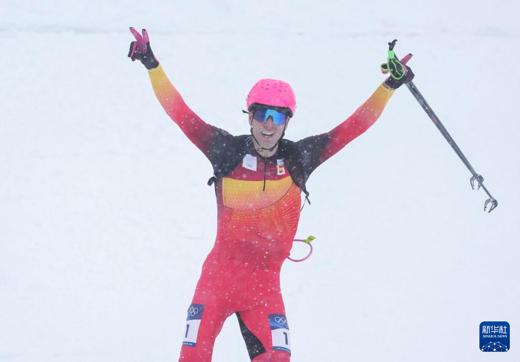 2月19日,西班牙选手卡多纳·科利在比赛后庆祝。他获得冠军。