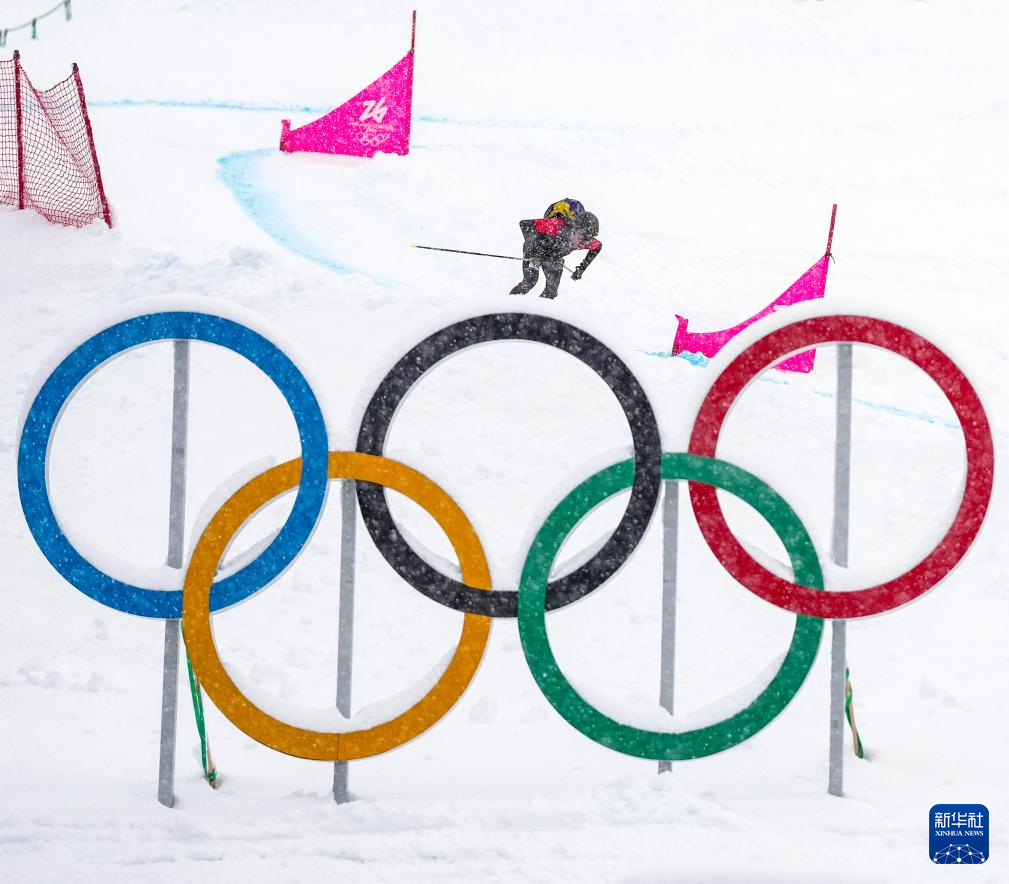 2月19日,运动员在比赛中通过菱形区。