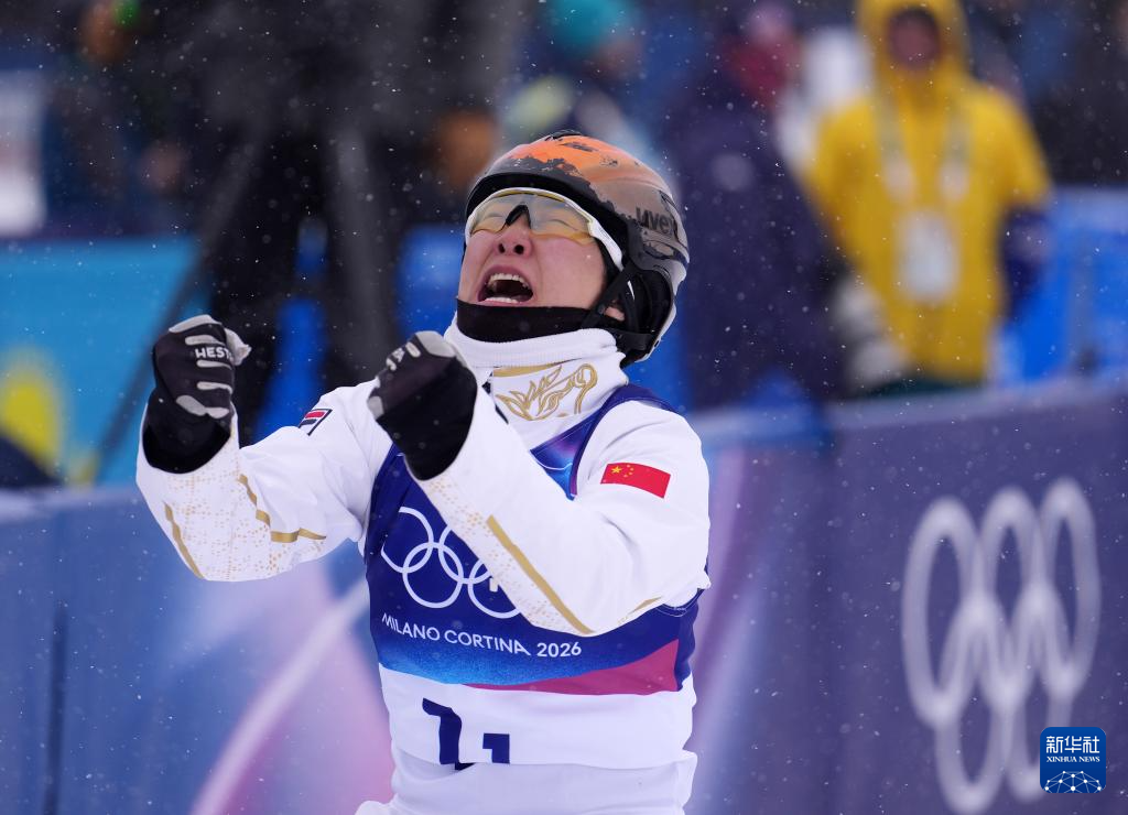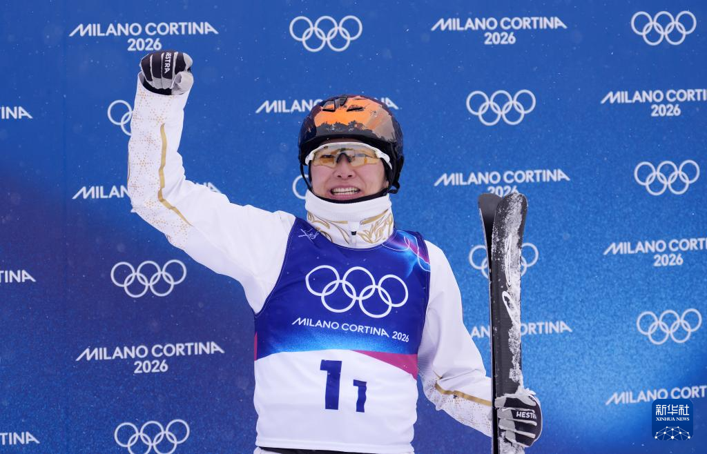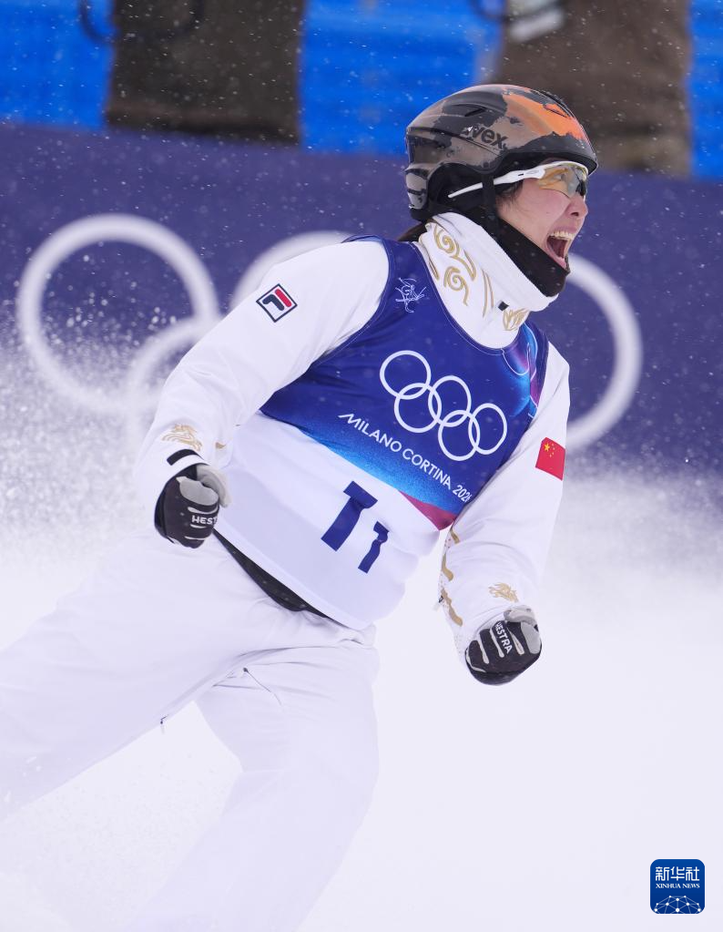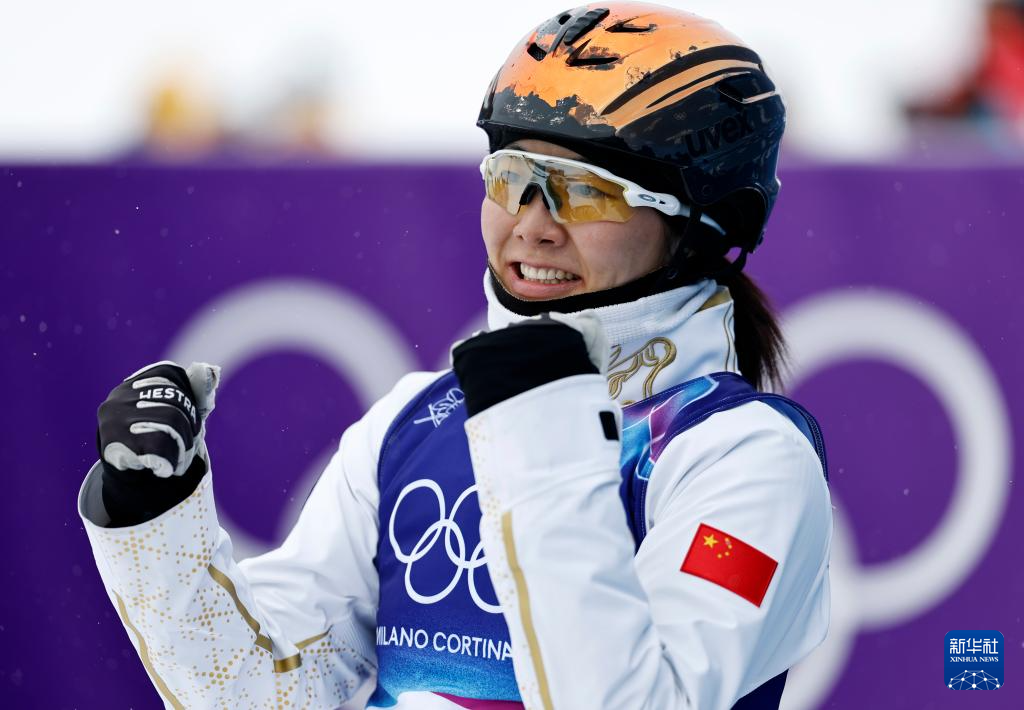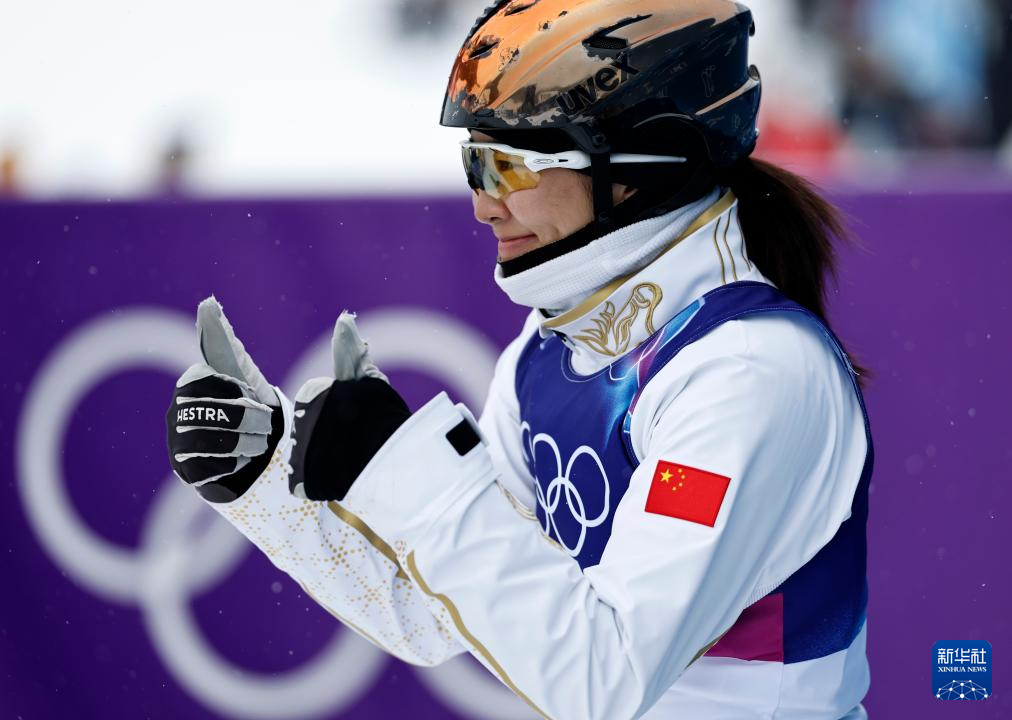 2月21日,中国队选手徐梦桃在完成第一跳后。最终,中国队获得铜牌。