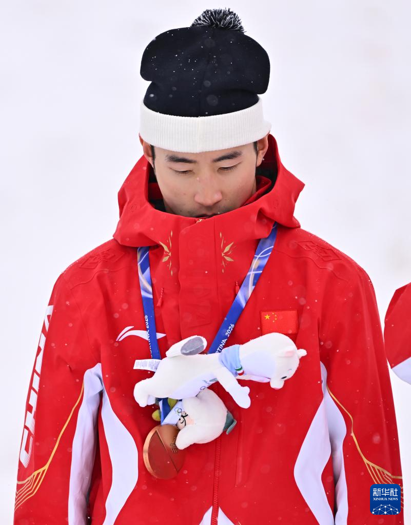 2月21日,中国队选手王心迪在第二轮比赛中。最终,中国队获得铜牌。