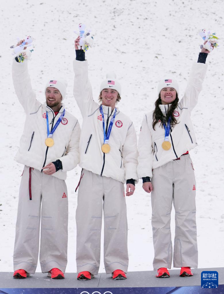 2月21日,美国队选手利利斯在第二轮比赛后。最终,美国队获得金牌。