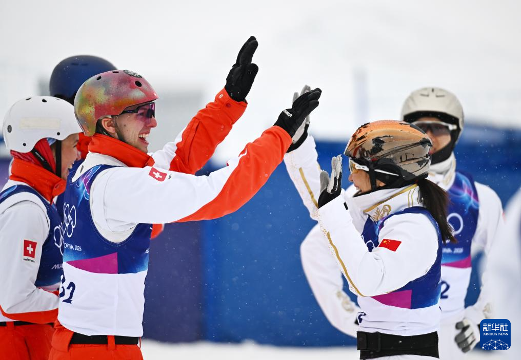 当地时间2月21日,米兰-科尔蒂纳冬奥会自由式滑雪空中技巧混合团体决赛在意大利利维尼奥举行。