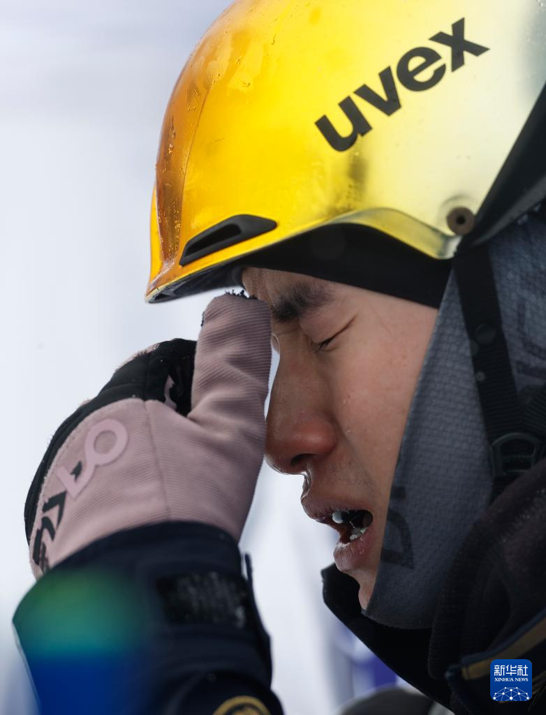 2月21日,中国队选手王心迪在第一轮比赛后等待成绩。最终,中国队获得铜牌。
