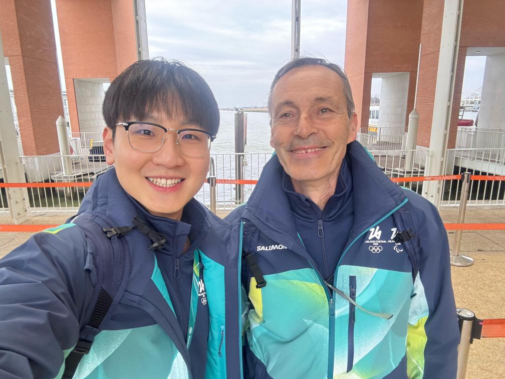 ↑刘宸赫在利维尼奥奥运村的工作岗位上