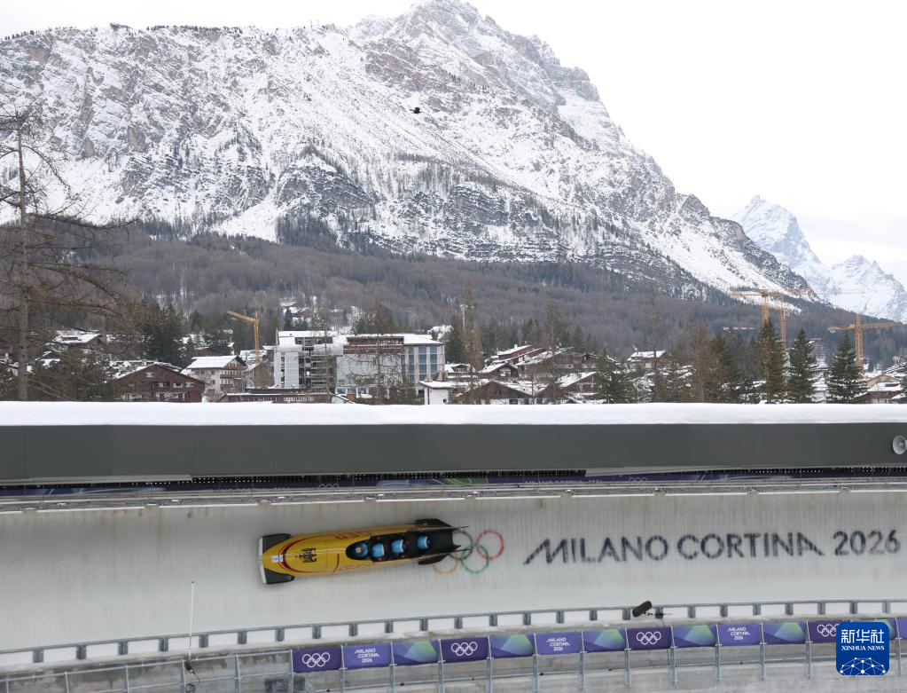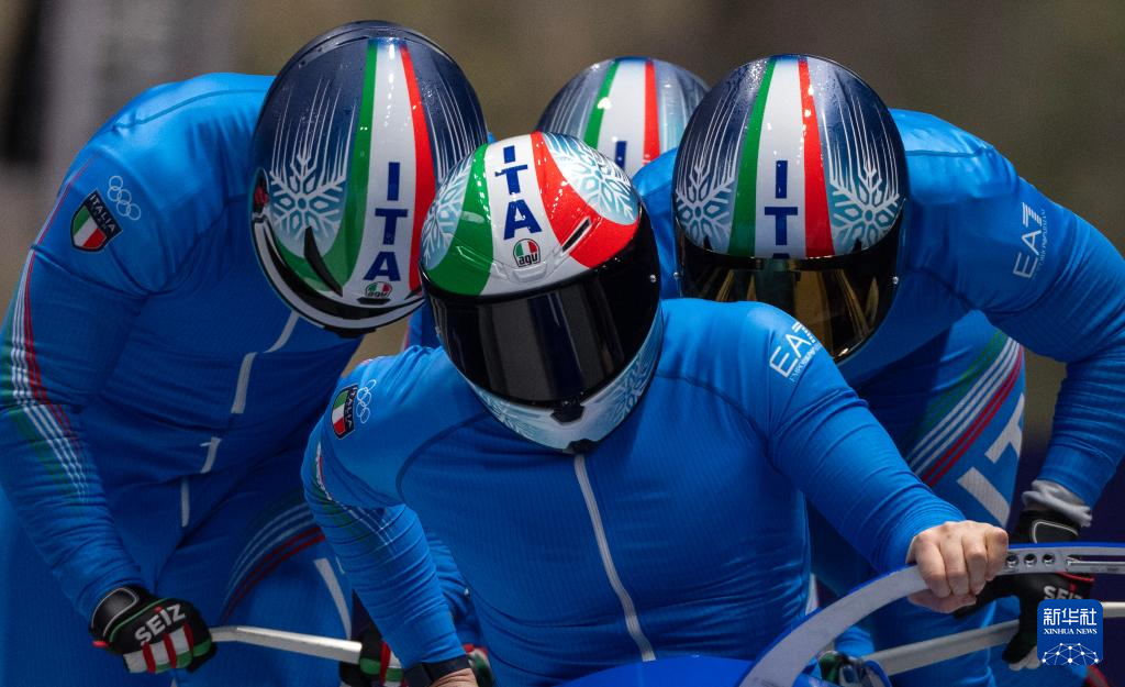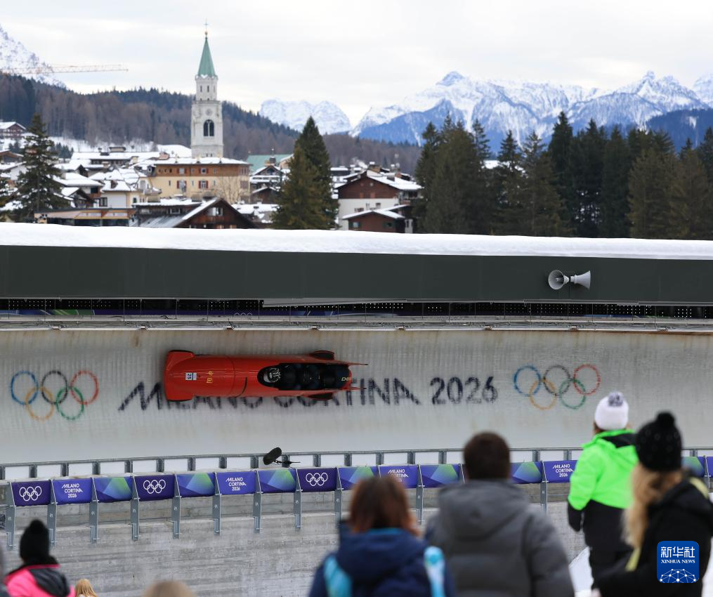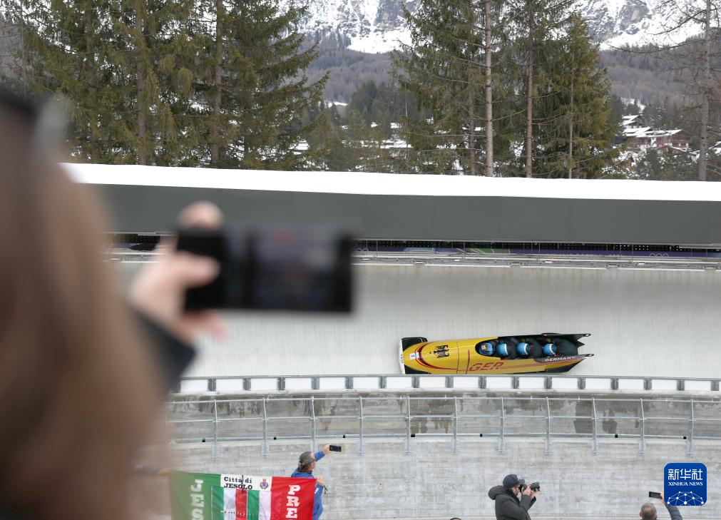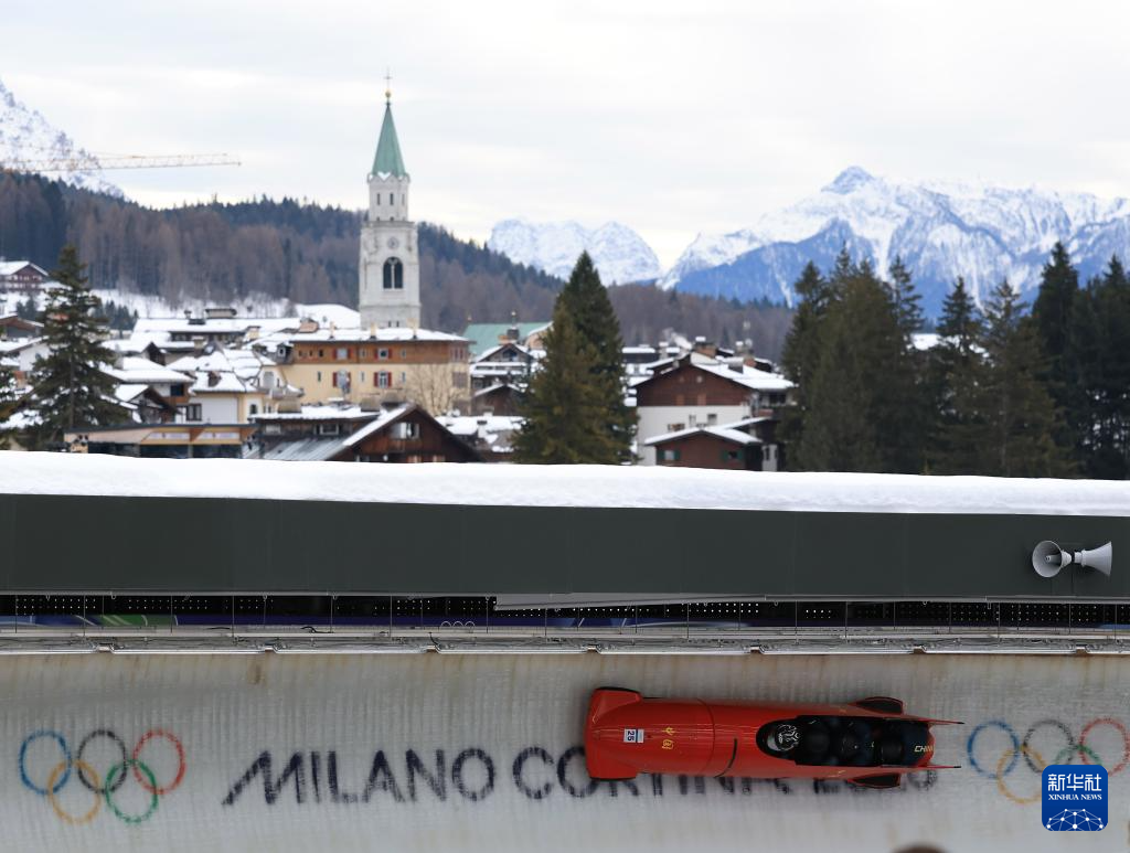 当地时间2月22日,米兰-科尔蒂纳冬奥会雪车项目男子四人赛在意大利科尔蒂纳举行。