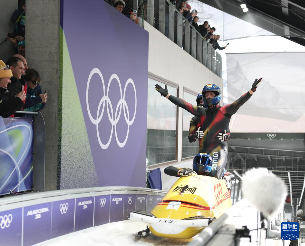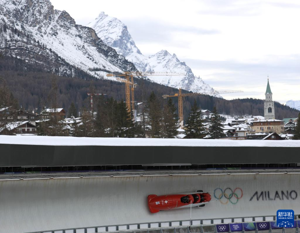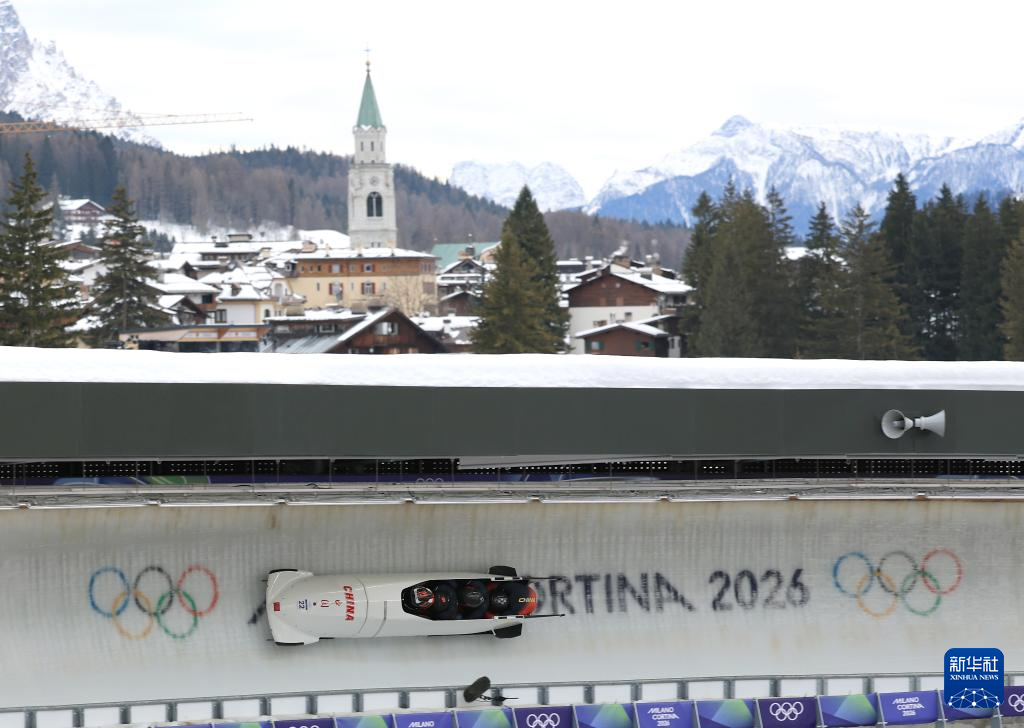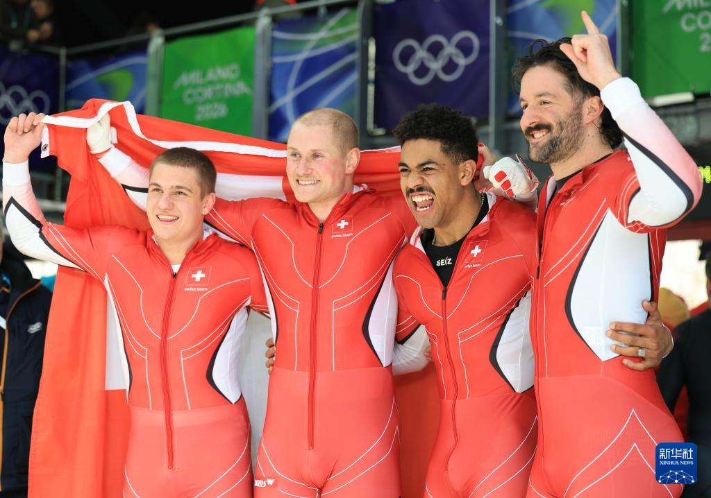当地时间2月22日,米兰-科尔蒂纳冬奥会雪车项目男子四人赛在意大利科尔蒂纳举行。