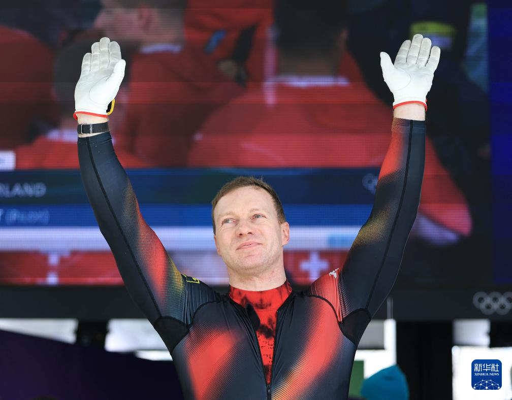 2月22日,德国队选手弗朗西斯科·弗里德里希在赛后庆祝。
