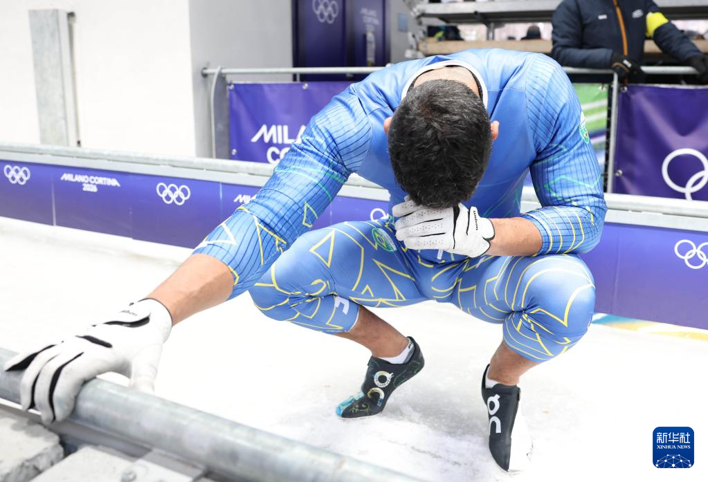 2月22日,巴西队选手戴维森·恩里克·代·苏沙在雪车男子四人赛第四轮比赛后激动哭泣。他们获得第19名。