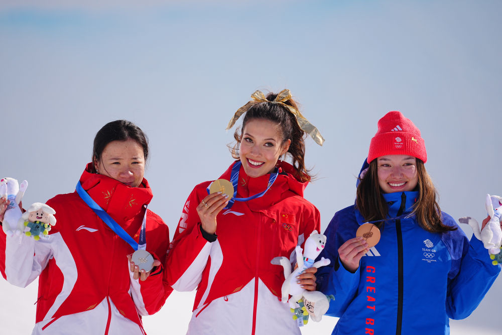 当地时间2月22日,在意大利利维尼奥举行的米兰-科尔蒂纳冬奥会自由式滑雪女子U型场地技巧决赛中,中国选手谷爱凌、李方慧包揽冠亚军。