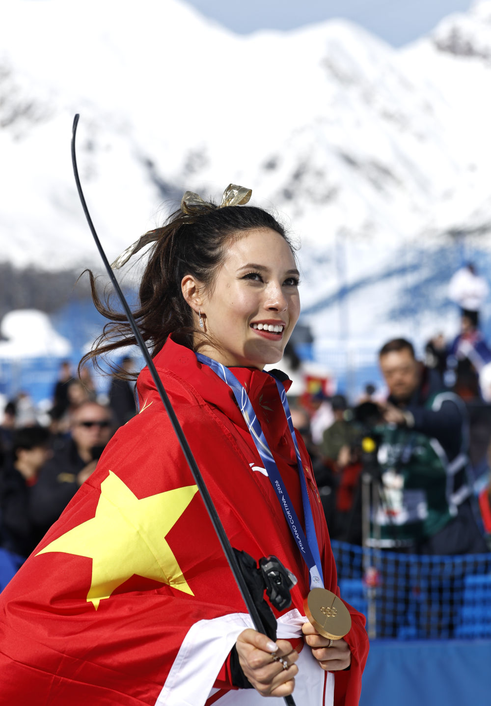 高清大图|雪映中国红!谷爱凌、李方慧巅峰绽放包揽冠亚军-新华网