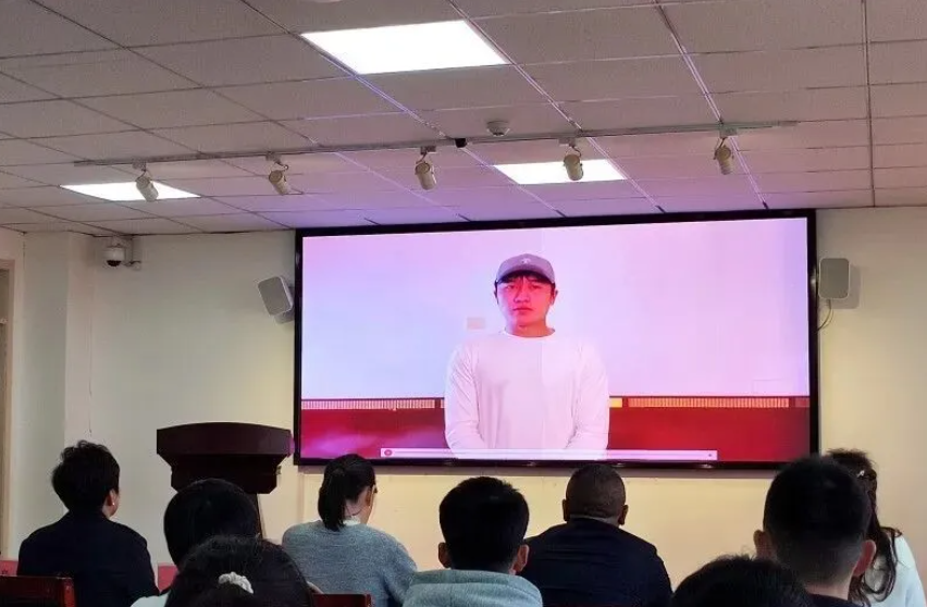 王梓阳在视频中向家乡青少年寄语。