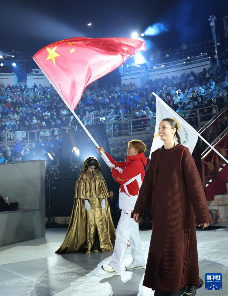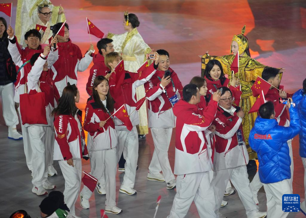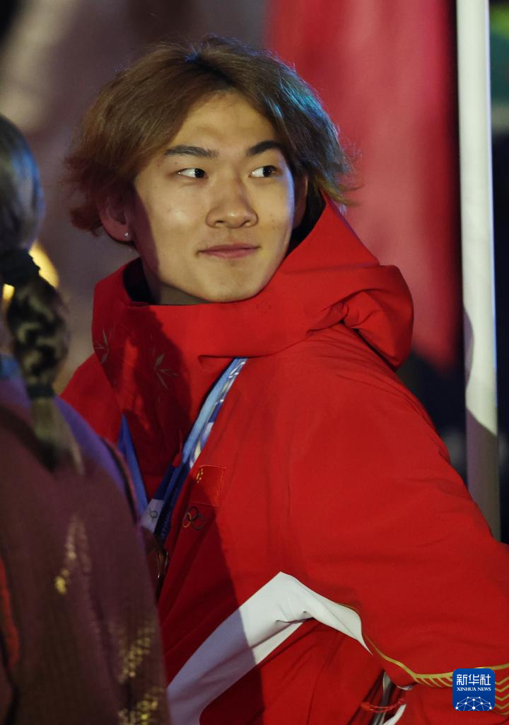 2月22日,中国体育代表团旗手苏翊鸣在闭幕式上入场。
