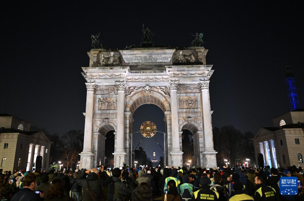 这是2月22日在意大利米兰和平拱门拍摄的主火炬。