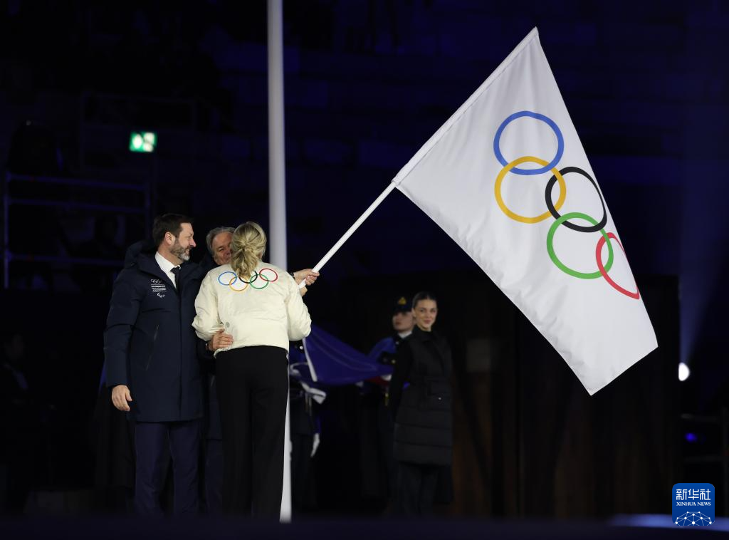 这是2月22日拍摄的闭幕式上的奥林匹克会旗交接仪式。