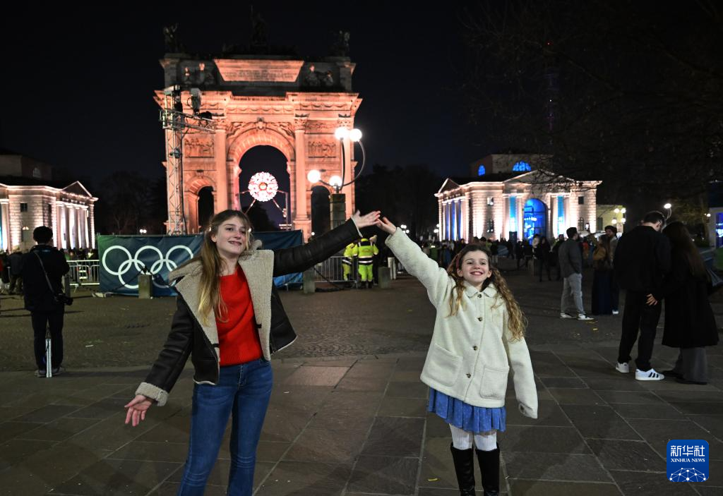 2月22日,在意大利米兰,人们和熄灭前的主火炬合影。