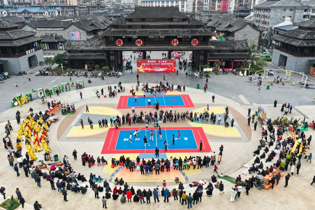 春节期间,贵州荔波乡村气排球联赛(简称“村排”)在黔南州荔波县举行小组赛。新华社记者 杨文斌 摄