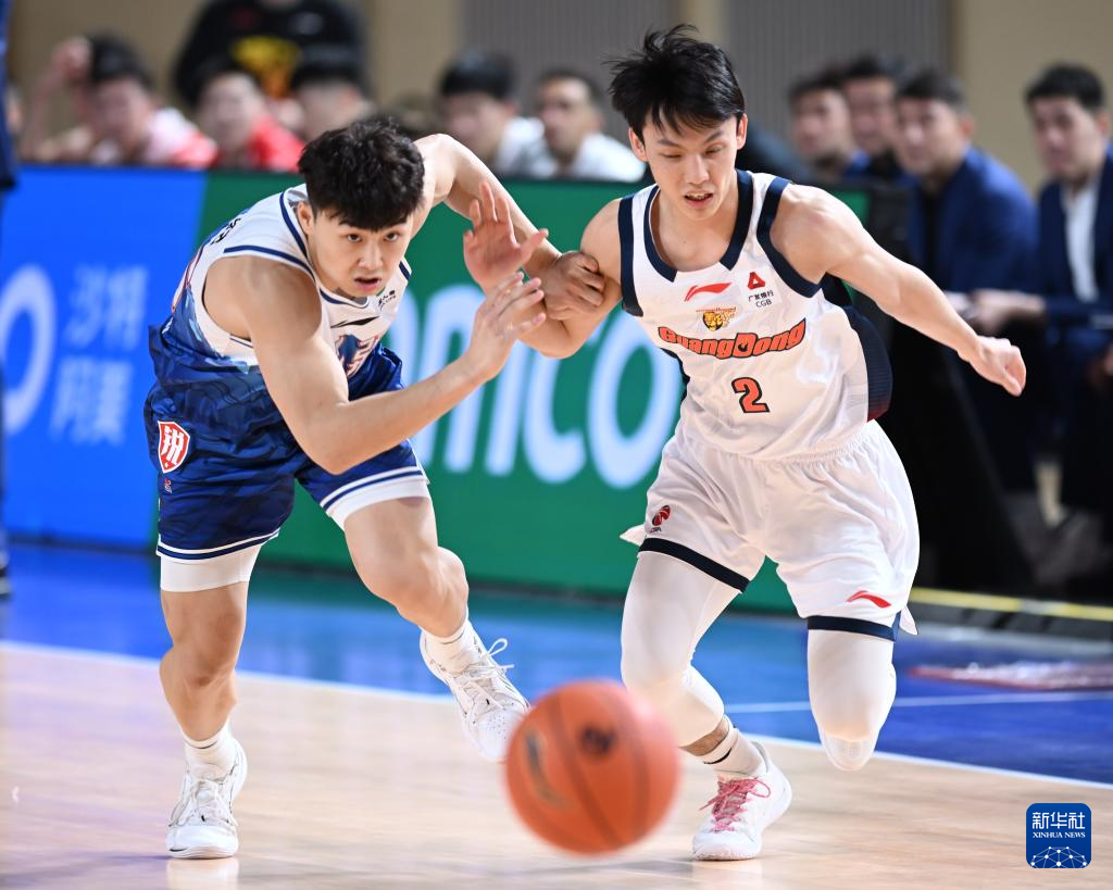 3月11日,新疆伊力特队球员葛浩然(左)与广东东阳光队球员徐杰在比赛中拼抢。