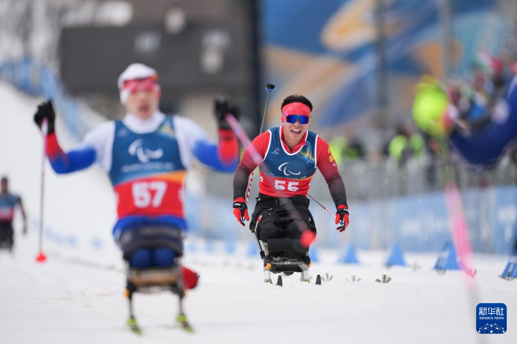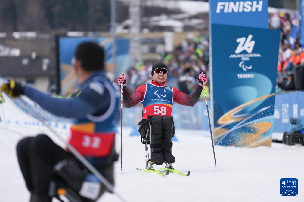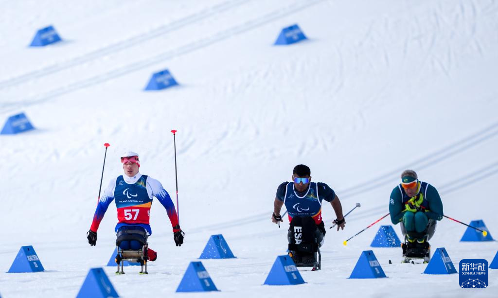 当地时间3月11日,米兰-科尔蒂纳冬残奥会越野滑雪男子中距离(坐姿)比赛在意大利泰塞罗举行。