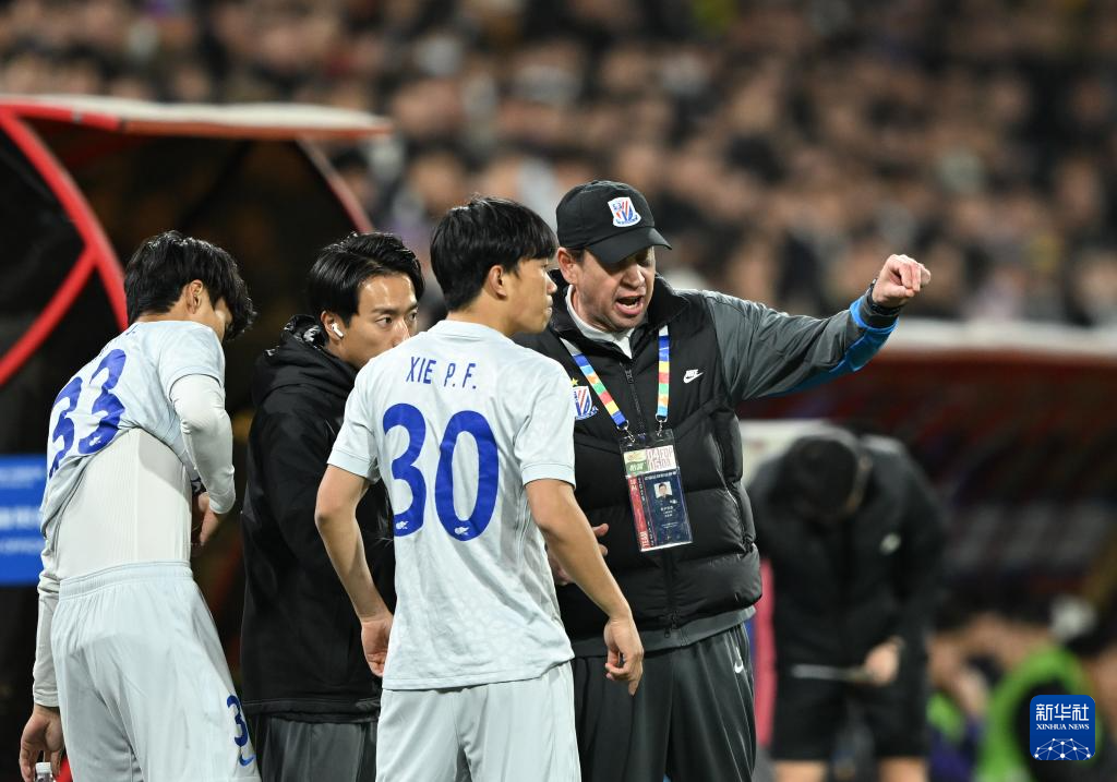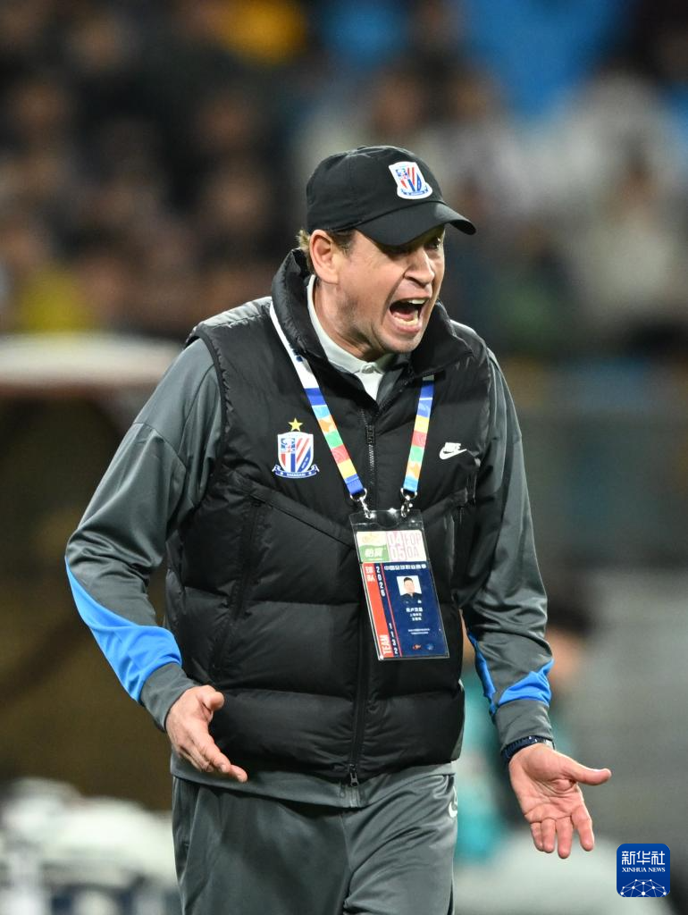 4月5日,上海申花队主教练斯卢茨基在场边指挥。