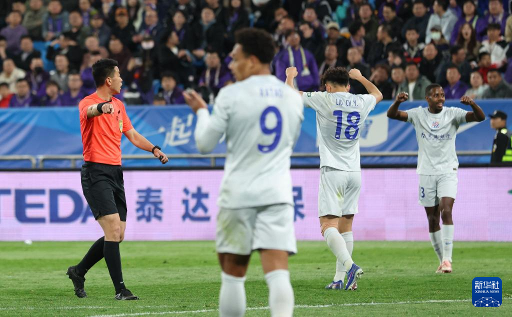 4月5日,在天津举行的2026赛季中国足球超级联赛第四轮比赛中,上海申花队客场3比2战胜天津津门虎队。