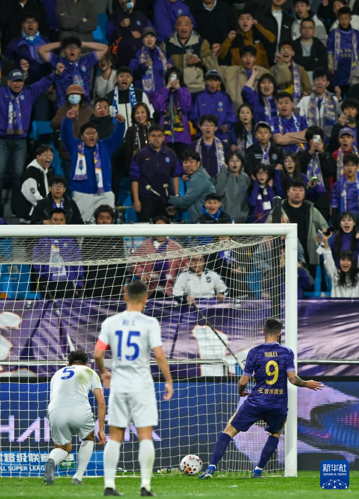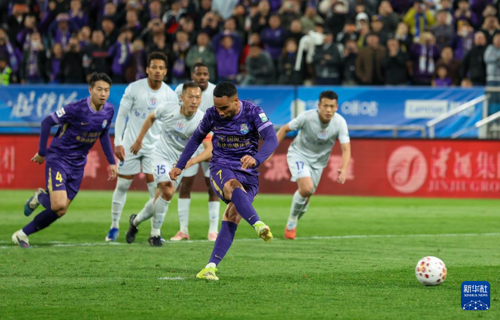 4月5日,天津津门虎队球员谢蒂内点球进球。