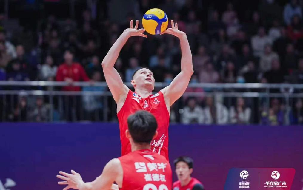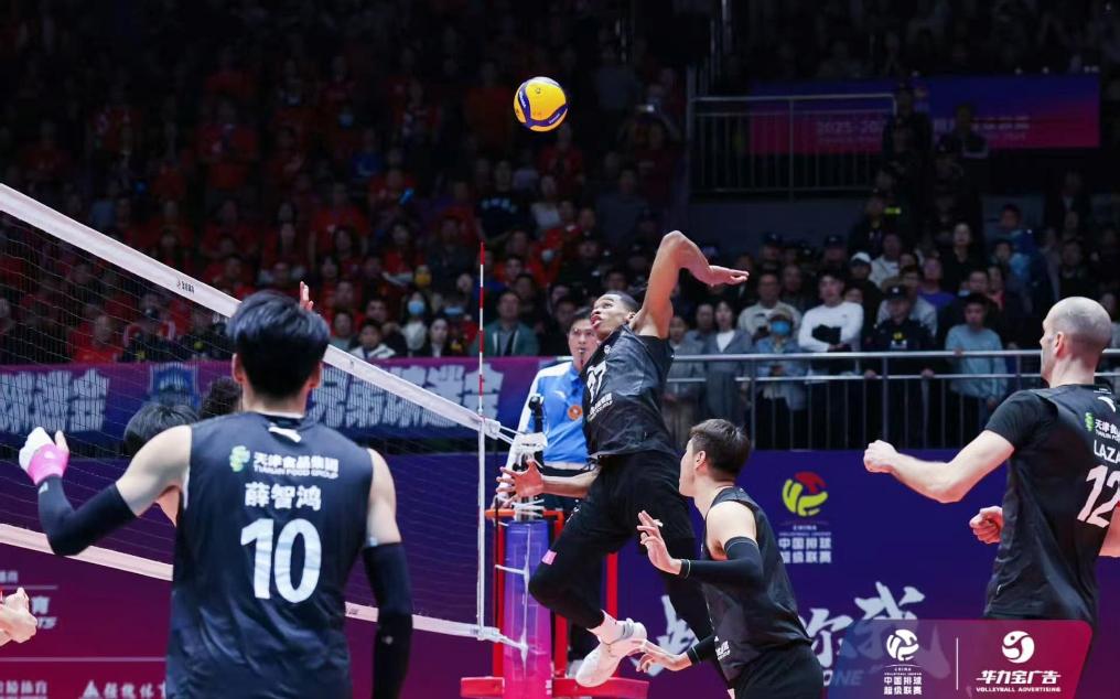 关键的第四局,双方失误频频,天津男排凭借核心球员薛智鸿和毛天一的稳定发挥,赢得了更多攻防转换的机会。双方一路战至24:23,天津男排迎来首个赛点。随着外援阿力的一记左手重杀得手,他们“让一追三”拿下比赛。