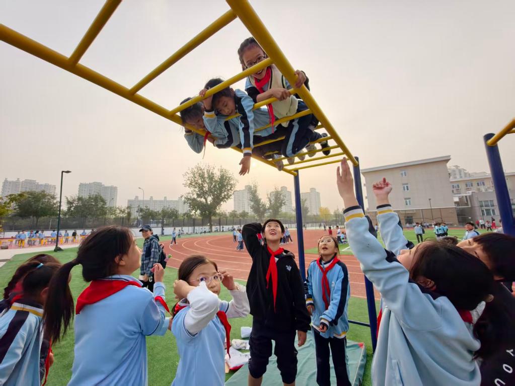 “小学校也可以搞大体育。我们的操场不算是很大,但是所有的空间都得到了有效利用,像攀爬架、攀岩这样的运动是对操场空间的立体利用,这样一来孩子们都出来活动也不显得太拥挤。”他说。