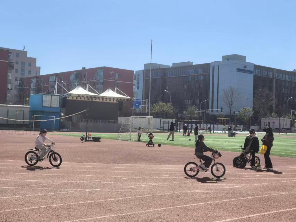 他认为,要让孩子养成运动习惯,家长的影响和陪伴也至关重要。因此,从2022年开始,学校尝试运动场对外开放。开放的时间是周一至周五的18:00至20:00以及周末、节假日的7:00至11:00和17:00至20:00。只要是家长带着孩子、登记基本信息,就可以在开放的时间段到学校操场活动。而且,这样的开放政策并不只是针对在丰台区外国语学校上学的学生,在学校附近居住的孩子都可以享受,学校的部分运动器材也可以免费使用。