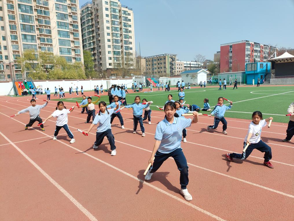 4月2日中午12点多,记者在北京市丰台区外国语学校的操场上看到了热火朝天的景象。