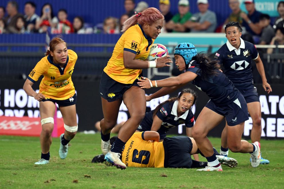 女子比赛中,中国香港队以12:24不敌泰国队。泰国队开局就以5:0领先,随后中国香港队奋起直追,将比分反超至7:5。进入下半场,泰国队掌控节奏,比分一度被拉大至24:7,中国香港队最终将比分追至12:24。