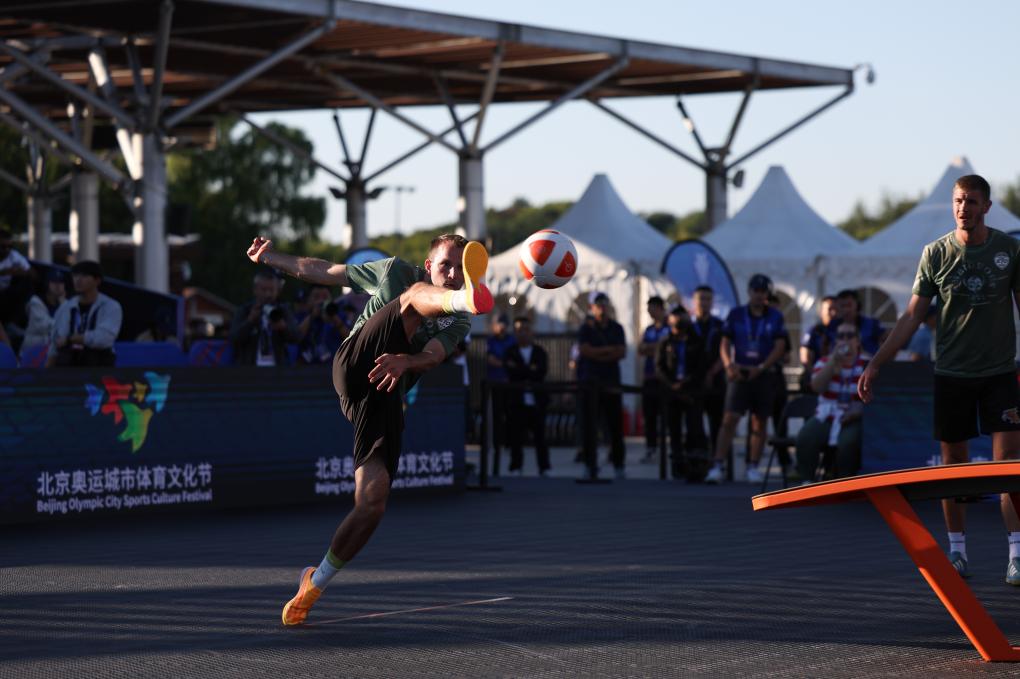 另一个既和足球有关又极具观赏性的项目是台克球,同样在御海路竞赛场馆群举行。该项目起源于匈牙利,是一个集足球技术、乒乓球规则与乒乓设备于一体的运动。国际台克球联合会于2017年在布达佩斯成立,如今全球已经有一百多个国家和地区拥有了台克球协会。在本届赛事中,台克球首次成为亚沙会正式比赛项目,设男双、女双和混双三个小项。