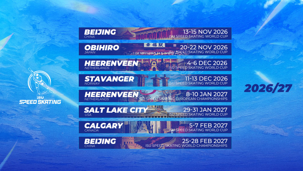 速滑世界杯本赛季设有六站,其中11月13至15日进行的首站将在北京进行。此外,将于2027年2月底进行的速滑世锦赛也落户北京。