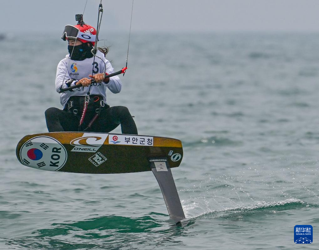 4月28日,在海南三亚举行的第六届亚洲沙滩运动会帆船项目水翼风筝板女子公开系列赛中,中国选手马子淋获得冠军、李姝璇获得亚军,韩国选手李昤隐获得季军。