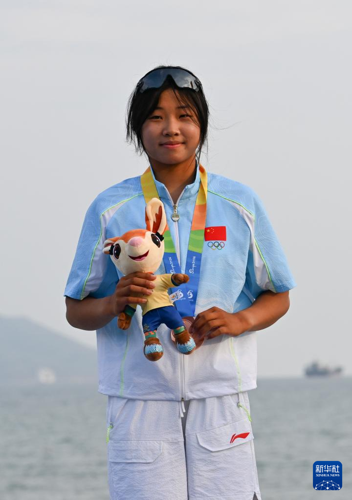 4月28日,在海南三亚举行的第六届亚洲沙滩运动会帆船项目水翼帆板女子公开系列赛中,中国队选手陈逸敏获得冠军,中国香港队选手袁静雪和中国队选手李晴分获亚军、季军。