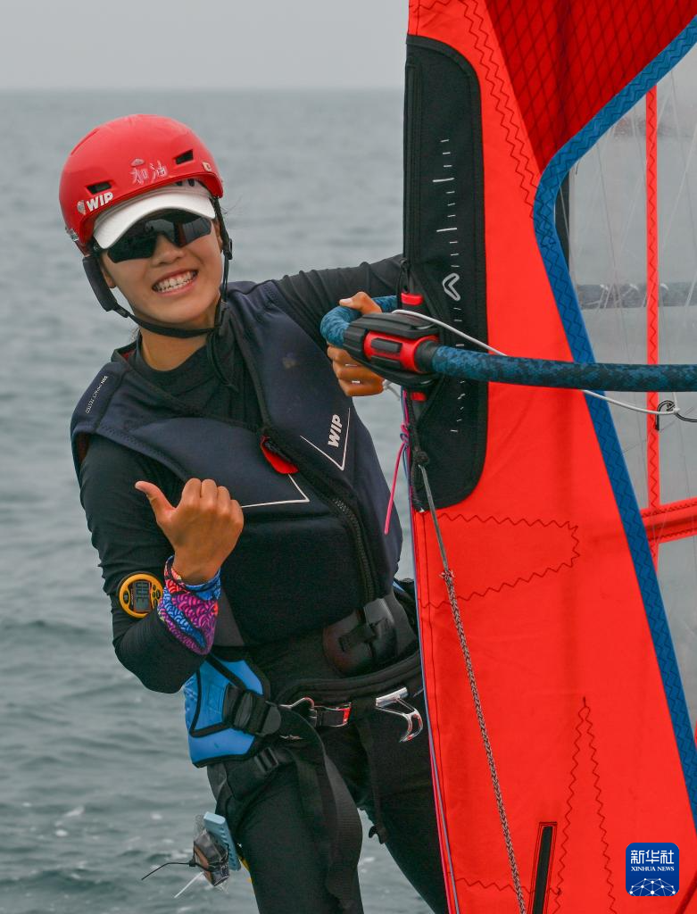 4月28日,冠军中国队选手陈逸敏在等待比赛。当日由于风力未达竞赛要求,此前轮次的总成绩即为最终成绩。