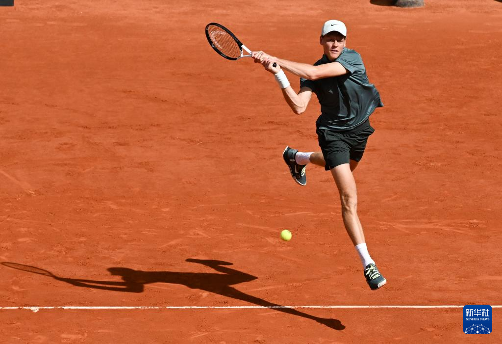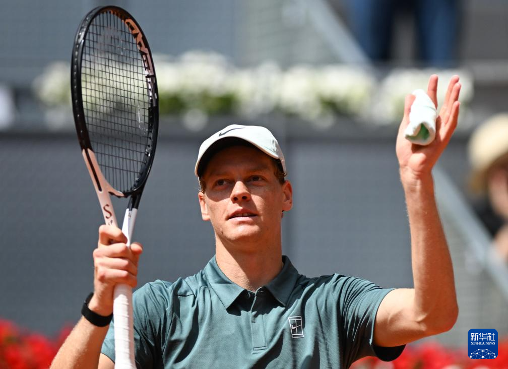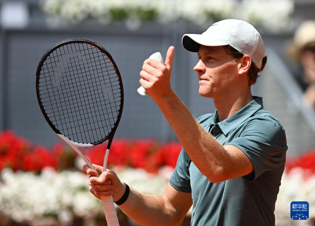 4月28日,意大利选手辛纳在比赛后向观众致意。