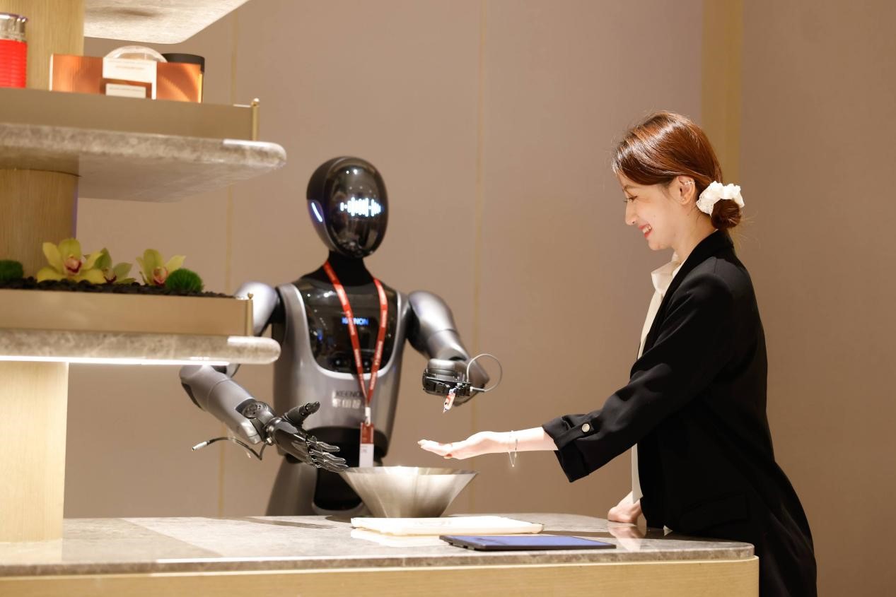 擎朗人形机器人XMAN-R1、大载重机器人S100、酒店机器人W3、清洁机器人C40、配送机器人T10/T3等8台机器人全面上岗,为国际宾客提供从迎宾接待、行李配送再到客房服务的全流程智能化体验,这批“擎朗机器人员工”各司其职、默契配合,流畅融入酒店全服务流程,并收获了大量海外宾客的好评。