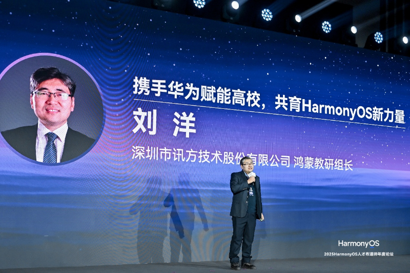 企业与社会机构是规模化、实战化赋能的关键力量。深圳市讯方技术股份有限公司鸿蒙教研组长刘洋,以培训机构视角讲述了如何将华为最新技术转化为教学实践。讯方作为华为HarmonyOS授权培训服务商,在2025年对接了40多所高校,设计融合鸿蒙开发的定制化人才方案,通过课程、认证、大赛助力学生打通就业链路,助力人才与岗位对接。