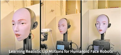 人形机器人在学习真实的嘴唇动作。图片来源:美国哥伦比亚大学
