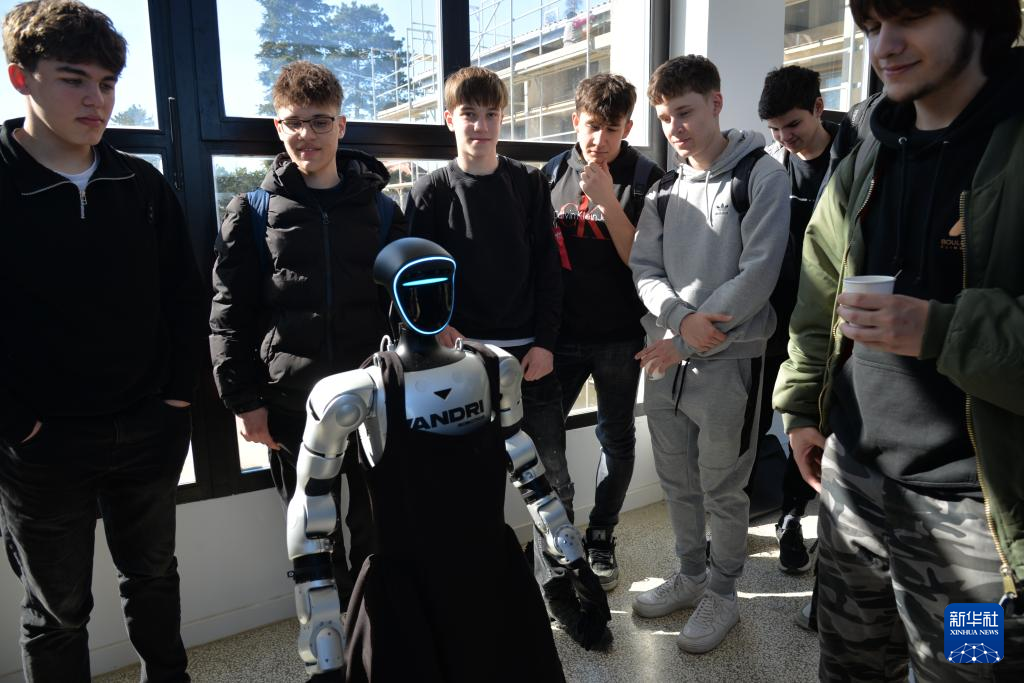 2月25日,在克罗地亚萨格勒布鲁杰尔·博什科维奇研究所,人们观看人形机器人“通卡”。