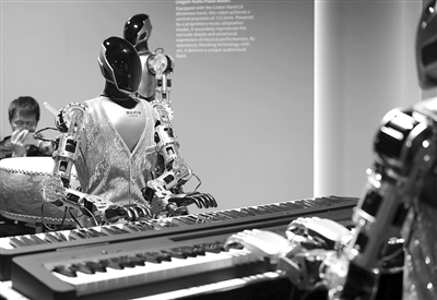 近日,在中关村论坛年会新闻中心内,人形机器人在演奏音乐。 新华社记者 张晨霖 摄