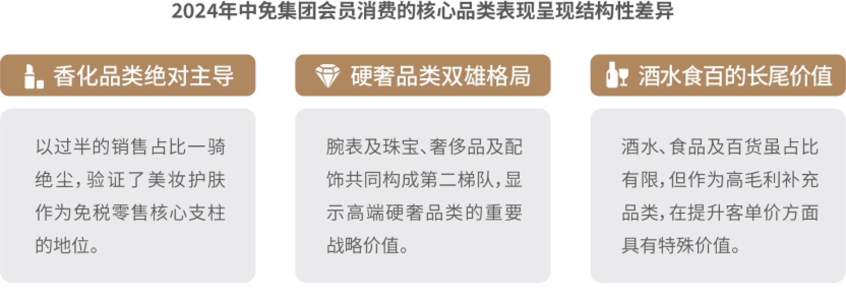 在核心品类消费维度,彩妆香水增长亮眼,外籍旅客、男性客群、国潮品牌成为品类重要的增长点;奢侈品及配饰方面,消费结构多元化,超高端市场增长显著,轻奢区间保持稳定需求;腕表及珠宝方面,品类分化显著,首饰品类同比增长,腕表需求区域性特征突出;酒水方面,市场扩容升级,品类及人群消费分层显著,渠道互补发展,呈现出规模扩张与结构升级并行的显著特征;食品及百货方面,市场稳健扩容,圈层特征鲜明,Z世代和银发人群正在引发新的情感和健康消费变革。