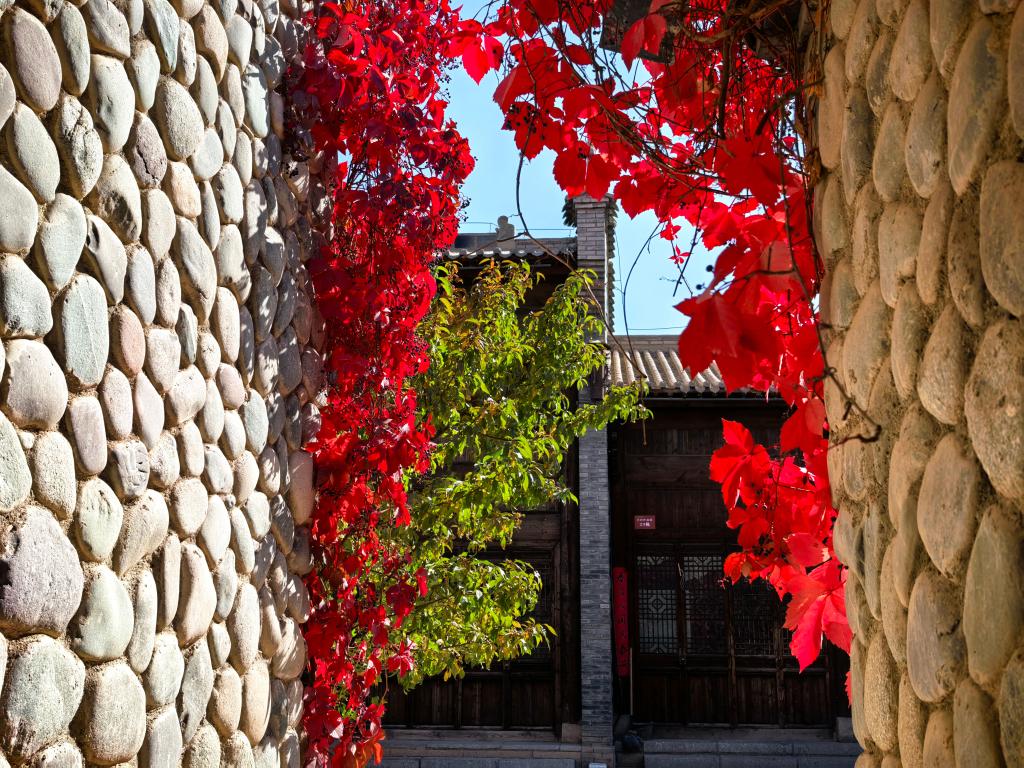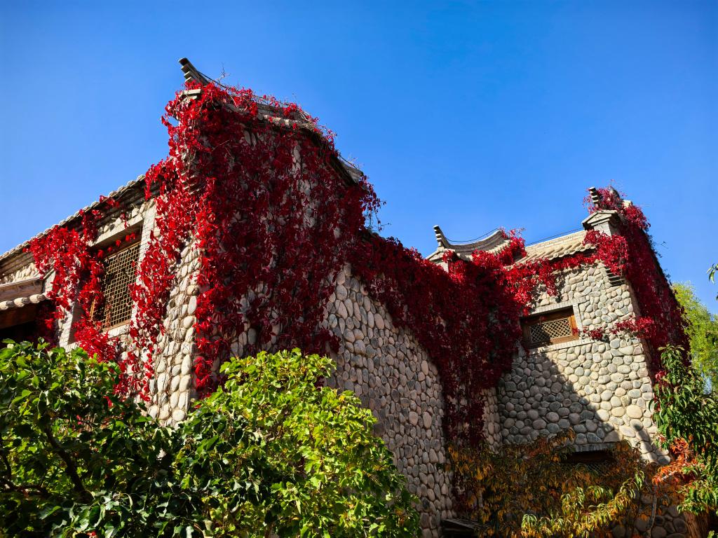 近日,甘肃省张掖市临泽县丹霞口文旅小镇秋意正浓。