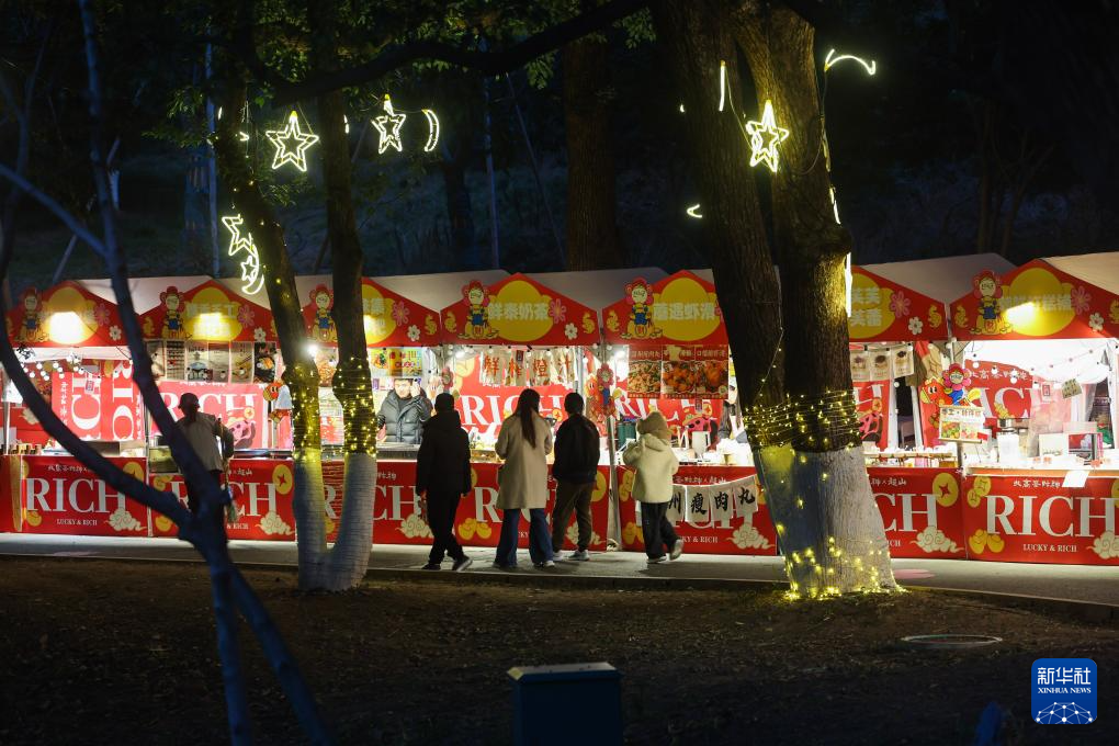 2月23日,人们在超山风景名胜区夜游专场消费市集游览。