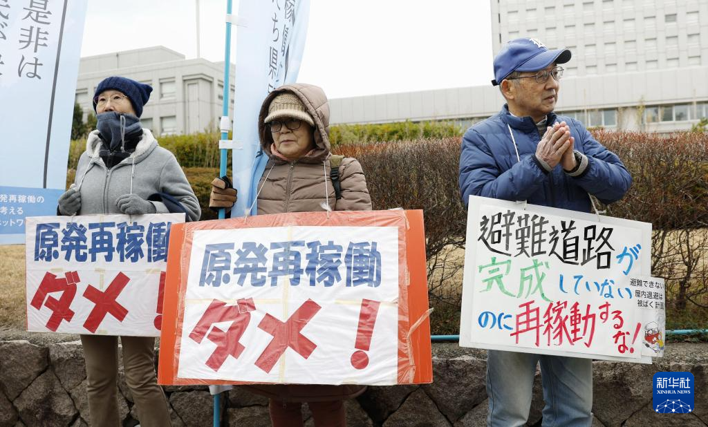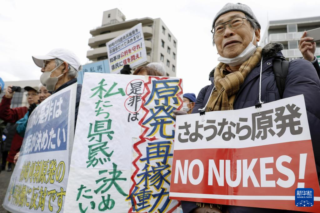 12月22日,民众在日本新潟县抗议重启柏崎刈羽核电站。新华社/共同社