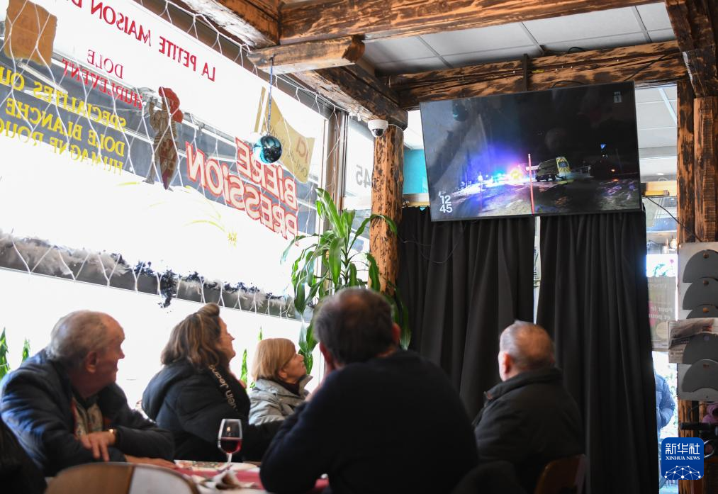 2026年1月1日,在瑞士日内瓦,人们在一家酒吧观看报道瓦莱州酒吧爆炸的电视画面。新华社记者 连漪 摄