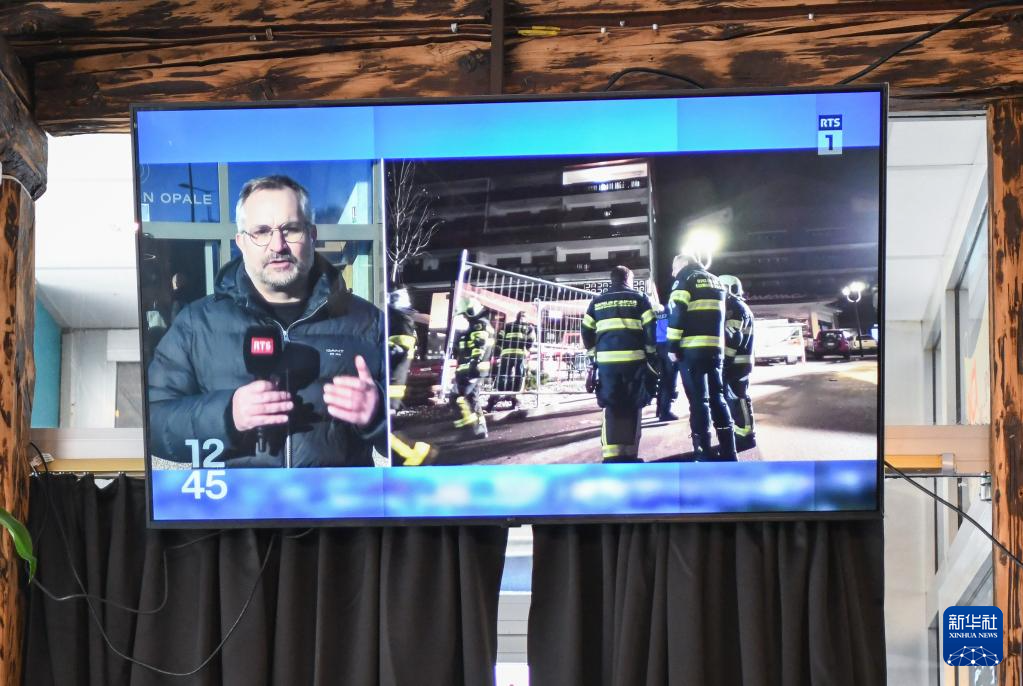 这是2026年1月1日在瑞士日内瓦一家酒吧内拍摄的报道瓦莱州酒吧爆炸的电视画面。新华社记者 连漪 摄